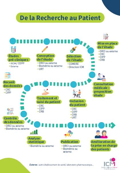 La recherche clinique est une des missions de l’ICM. Les essais cliniques sont encadrés par une règlementation spécifique et sont menés selon des protocoles scientifiques rigoureux, en conformité avec les lois relatives à la politique de santé publique.